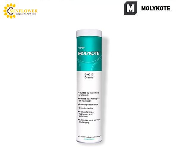 - Molykote G-0010 là mỡ công nghiệp độ mềm NLGI lớp 2 có dầu gốc là dầu khoáng, được dùng cho ổ trục đa năng.