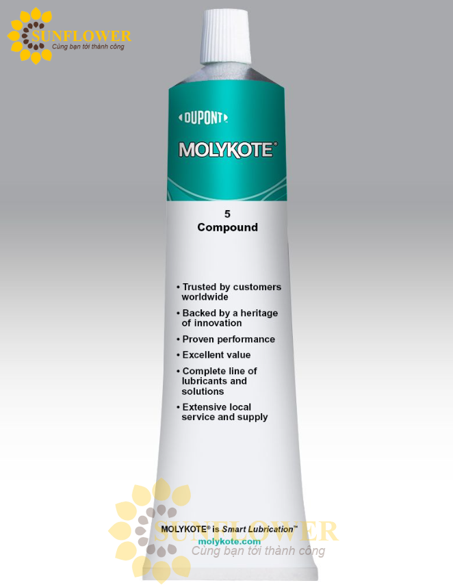 MOLYKOTE 5 Compound – Hợp chất bôi trơn là gì? Đây là giải pháp chuyên dụng nhằm tạo ra kết quả ổn định trong nhiều điều kiện làm việc. Trên thực tế, sản phẩm hỗ trợ tăng thông lượng, giảm làm lại và giúp ổn định biến thiên của quy trình. Những thông tin tổng quan bạn cung cấp bao gồm: MOLYKOTE 5 Compound – Hợp chất bôi trơn NLGI Lớp 3, màu xám nhạt, chuyên dùng cho chất cách điện và công tắc dòng điện cao. Cải thiện khả năng bôi trơn từ kim loại sang ki.. Chúng tạo khung để MOLYKOTE 5 Compound – Hợp chất bôi trơn hòa vào quy trình sản xuất hoặc dịch vụ của doanh nghiệp.