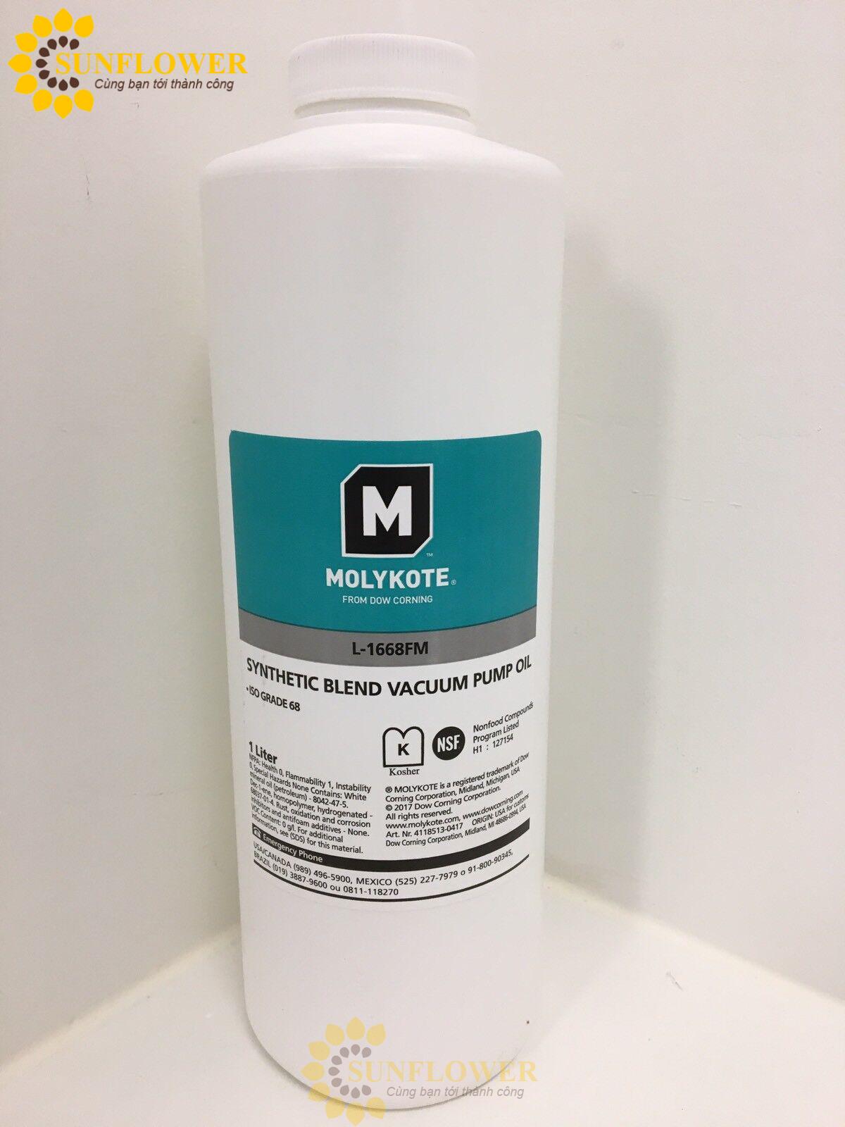 MOLYKOTE L-1668FM Synthetic Blend Vacuum Pump Oil – Dầu bơm chân không tổng hợp là gì? Đây là giải pháp chuyên dụng nhằm tạo ra kết quả ổn định trong nhiều điều kiện làm việc. Trên thực tế, sản phẩm hỗ trợ tăng thông lượng, giảm làm lại và giúp ổn định biến thiên của quy trình. Những thông tin tổng quan bạn cung cấp bao gồm: Dầu bơm chân không tổng hợp MOLYKOTE L-1668FM – Công thức đặc biệt cho máy bơm chân không cánh quay. Dầu hỗn hợp MO / PAO cấp ISO 68 với gói phụ gia chất lượng cao giúp bảo vệ và duy trì hiệu suất tối ưu cho máy bơm chân không.. Chúng tạo khung để MOLYKOTE L-1668FM Synthetic Blend Vacuum Pump Oil – Dầu bơm chân không tổng hợp hòa vào quy trình sản xuất hoặc dịch vụ của doanh nghiệp.